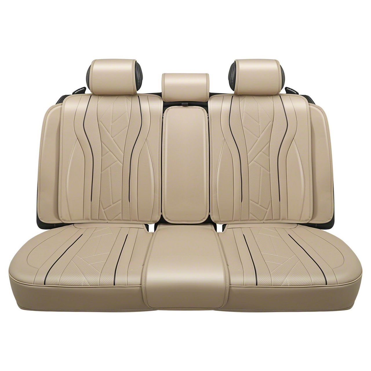 Construction and Appearance. Crafted from high-quality leatherette that mimics the look and feel of genuine leather, these seat covers feature breathable, padded upholstery for added comfort. Precision stitching and detailed embroidery offer durability and a premium finished appearance available in beige with options for other colors.