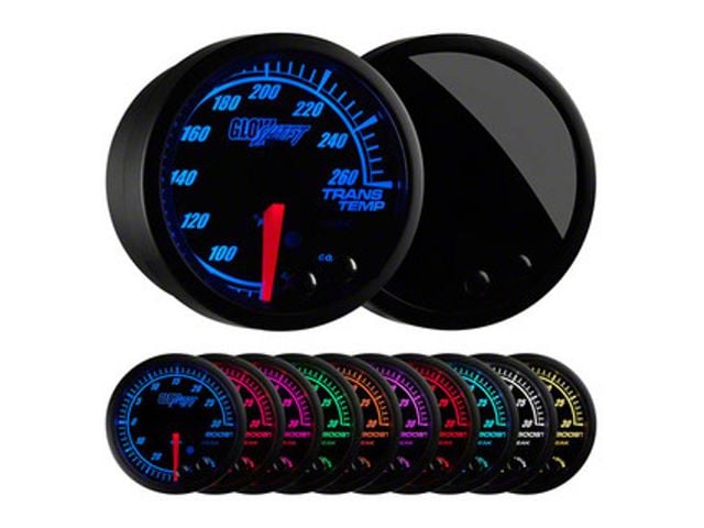 Accurate Transmission Monitoring. The Transmission Temperature Gauge offers precise monitoring of your vehicle's transmission temperature, providing readings from 80 to 260 degrees Fahrenheit. Designed for versatility, this Elite Series gauge allows you to choose from 10 colors of light output, making it a stylish addition to any vehicle interior.