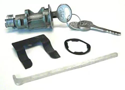 Construction and Appearance. Crafted from durable metal for strength and longevity, the lock cylinder is designed to resist wear and tampering. The included keys feature the iconic Ford logo for a period-correct look that enhances your vehicle's authenticity.