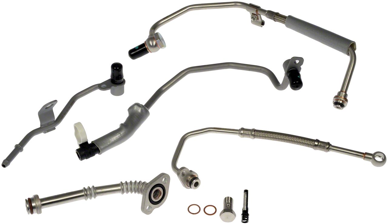 Reliable Turbocharger Fluid Management. The Turbocharger Coolant And Oil Supply / Return Line Kit is designed to ensure proper lubrication and cooling of your turbocharger system. This kit includes three turbo coolant lines and two turbo oil lines, making it a complete solution for maintaining optimal turbocharger function. With direct replacement parts, it provides OE-like performance and durability, keeping your engine running efficiently.