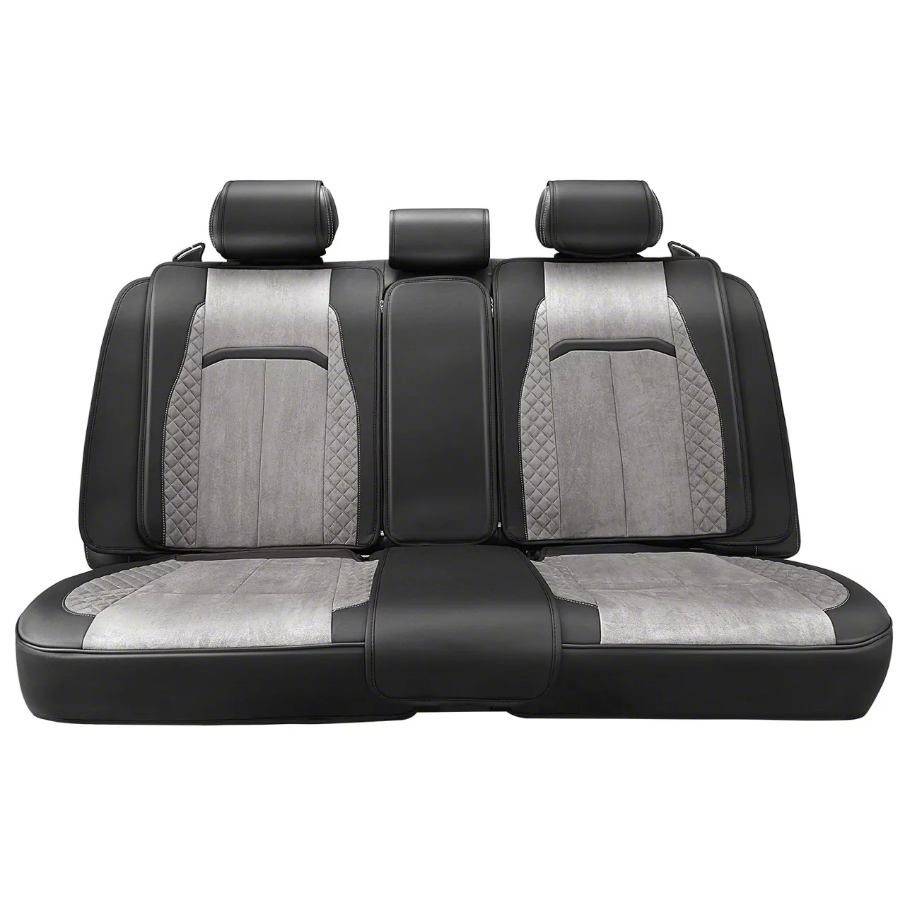 Premium Seat Protection. The Driven Voris Series Front and Rear Seat Covers; Gray/Black shield your vehicle's upholstery from wear while enhancing comfort and style. Designed to fully cover seats including headrests, these covers offer an ideal balance of protection and cushioning, preserving original seats for long-term value.