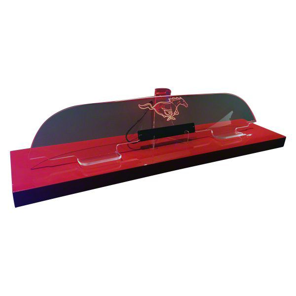 Eye-Catching Style. If you're looking for a sleek and stylish way to deflect the wind while driving, look no further than the Wind Deflector. This clear housing deflector is designed with the iconic Running Pony logo in red, making it a must-have for any Mustang fan.