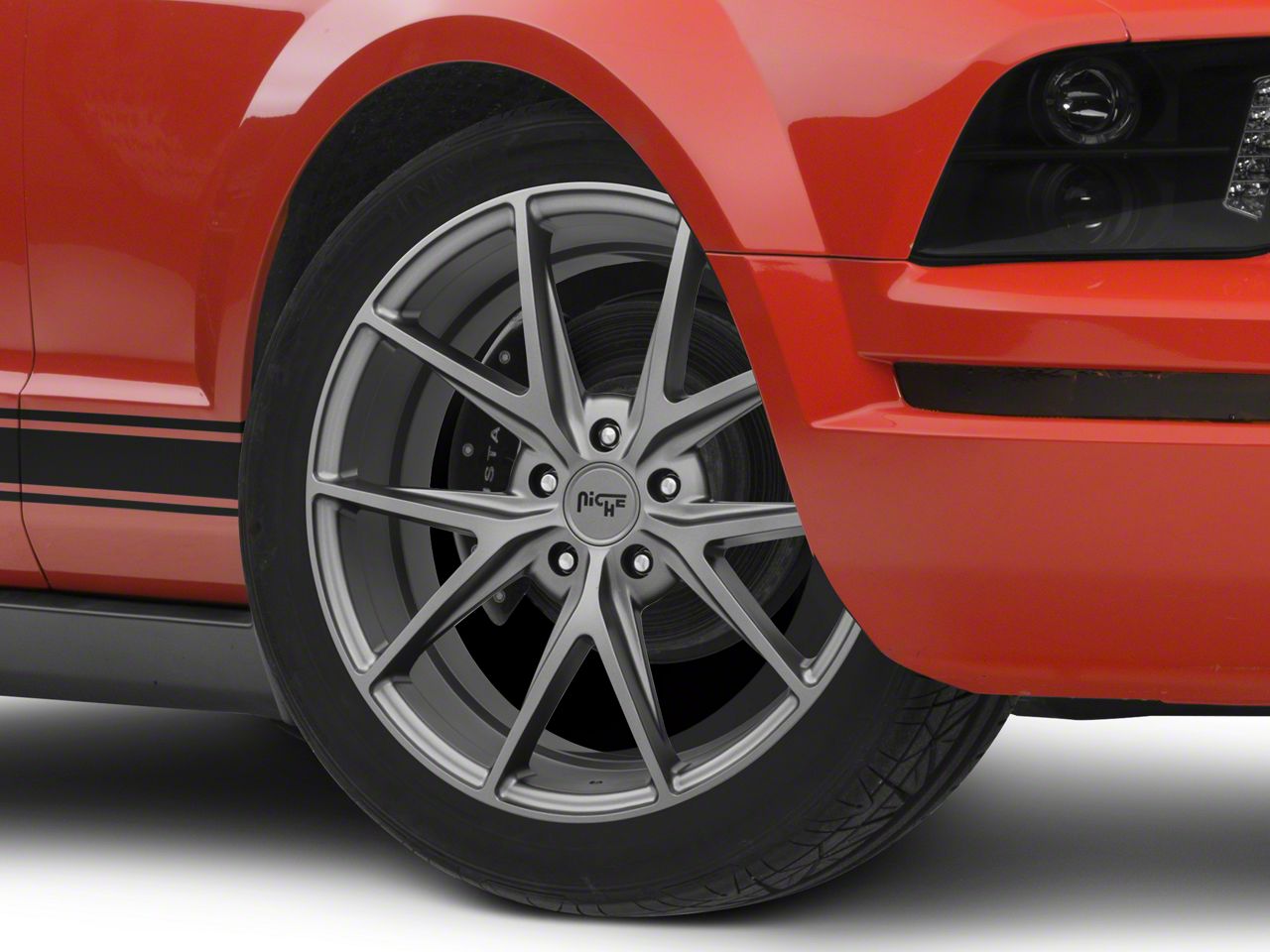 Application. This Niche Misano Matte Gunmetal Wheel; 19x9.5 with a backspace of 6.628 Inch, 168.4mm and bolt pattern of 5 x 114.3mm (5 x 4.5-Inch) ensures optimal alignment, unparalleled driving stability, and an impeccable fit with your vehicle. It is designed to fit the 2005-2009 Mustang models. Sold individually.