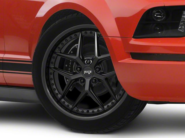 Application. This Niche Vice Gloss Black with Matte Black Lip Wheel; 20x9 with a backspace of 6.378 Inch, 162.1mm; and bolt pattern of 5 x 114.3mm (5 x 4.5-Inch) contributes to impeccable alignment and driving stability. Designed to fit 2005-2009 Mustang models, sold individually.