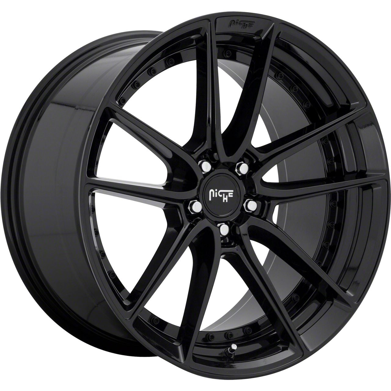 Niche DFS Gloss Black Wheel; 20x9 exudes an unparalleled aesthetic appeal that perfectly complements a range of vehicle styles. The unique design crafted by Niche not only accentuates the visual appeal but also seamlessly aligns with contemporary vehicle aesthetics.