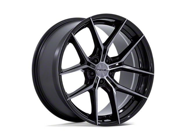 Niche Prodigy 5 Gloss Black with Dark Tinted Clear Wheel; 22x10.5 is a visually striking choice, offering a combination of rugged durability and modern styling. Its design complements off-road and sporty vehicles alike, enhancing the overall aesthetic appeal.