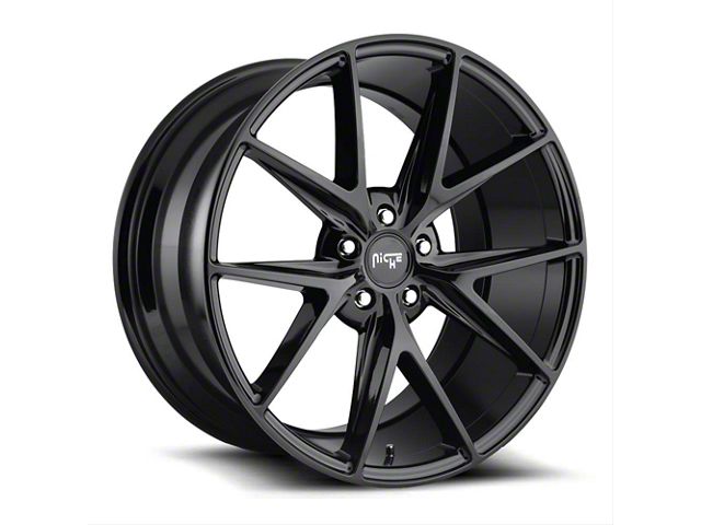 Niche Misano Gloss Black Wheel; Rear Only; 20x10. The Niche Misano Gloss Black Wheel offers a striking balance of style and refinement. Its unique design accentuates the vehicle's aesthetic, while the premium construction underscores its robust nature. This wheel is a perfect choice for those seeking both elegance and a strong visual statement.