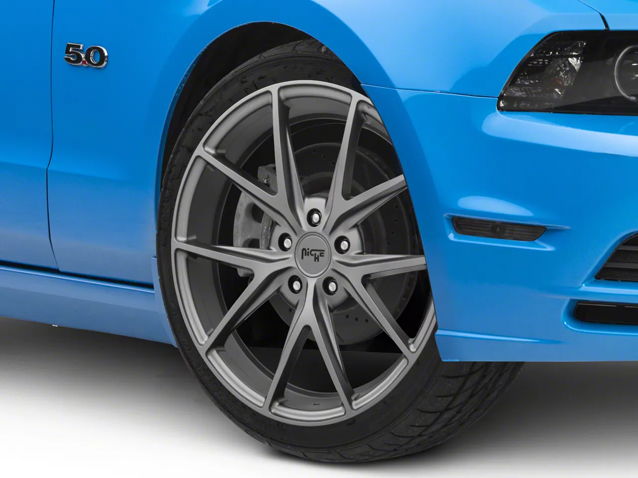 Niche Misano Matte Gunmetal Wheel; 20x10. The Niche Misano Matte Gunmetal Wheel offers a striking balance of style and refinement. Its unique design accentuates the vehicle's aesthetic, while the premium construction underscores its robust nature. This wheel is a perfect choice for those seeking both elegance and a strong visual statement.