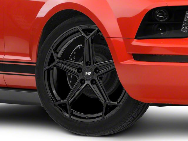 Application. This Niche Arrow Gloss Black Wheel; 20x9 with a backspace of 6.378 Inch, 162.1mm and bolt pattern of 5 x 114.3mm (5 x 4.5-Inch) ensures impeccable alignment and unmatched driving stability. Specifically designed for 2005-2009 Mustang models, each wheel is sold individually.