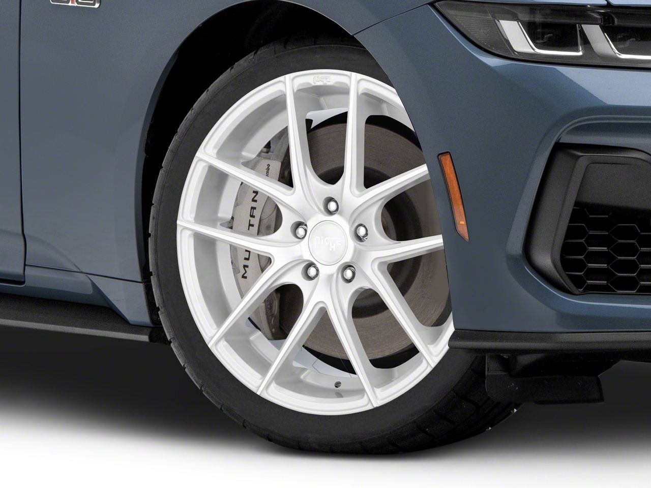 Application. This Niche Targa Matte Silver Wheel; 19x8.5, with a backspace of 6.128 Inch, 155.7mm and a bolt pattern of 5 x 114.3mm (5 x 4.5-Inch), is designed to enhance alignment and driving stability. It's specially designed to fit the 2024-2026 Mustang Performance Pack models, sold individually.