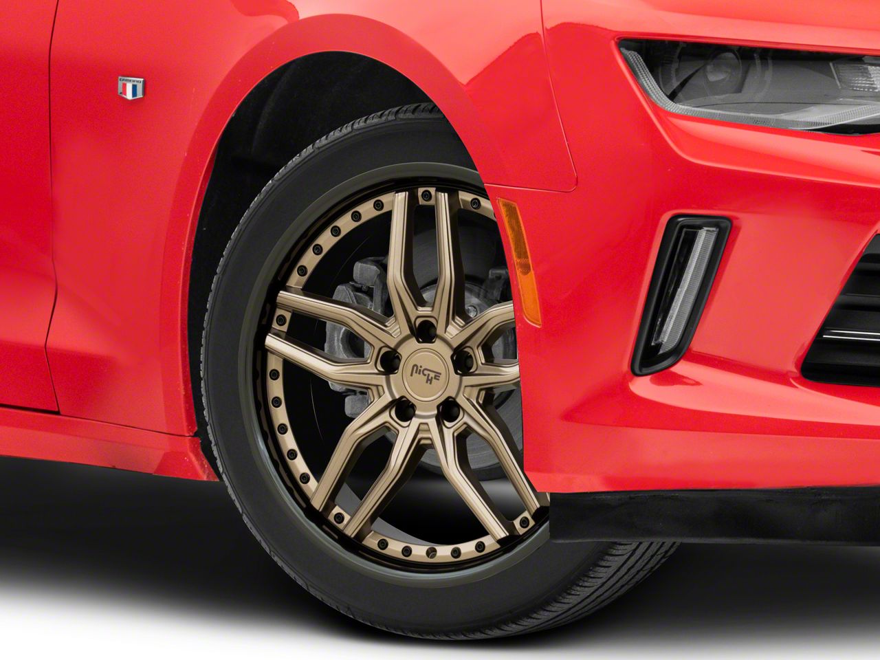 Application. This Niche Methos Matte Bronze with Black Bead Ring Wheel; 20x9, with a backspace of 6.378 Inch, 162.1mm; and bolt pattern of 5 x 120mm (5 x 4.72-Inch), ensures precise alignment and unwavering stability. Designed to fit the 2016-2024 Camaro models, it stands out as a tailored enhancement. Sold individually.