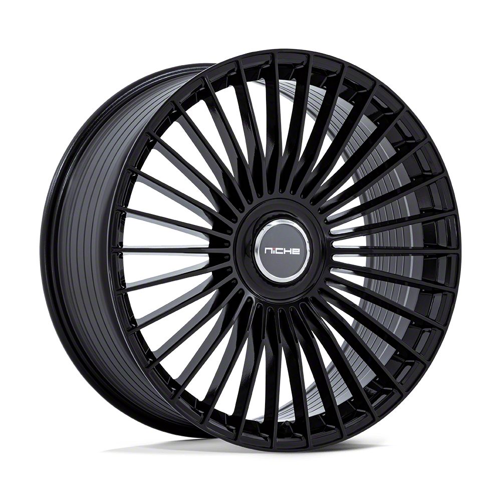 This 21x10.5 Niche Serene Gloss Black Wheel; Rear Only; 21x10.5 is completed in a high-quality gloss black finish that will make everyone take notice. For added looks and strength, the wheel features a durable clear coat that withstands the rigors of daily driving.