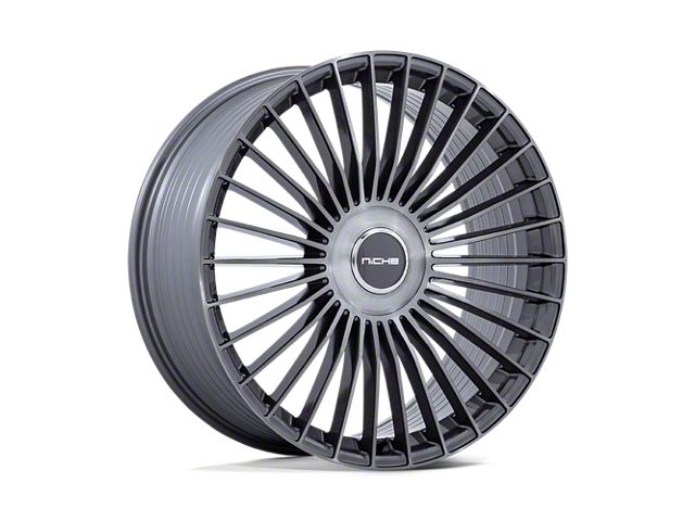 This 21x9 Niche Serene Gloss Titanium Brushed Wheel; 21x9 is completed in a high-quality gloss titanium brushed finish to make your wheel the envy of everyone. For added looks and durability, the wheels has a durable clear coat that withstand the rigors of daily driving.