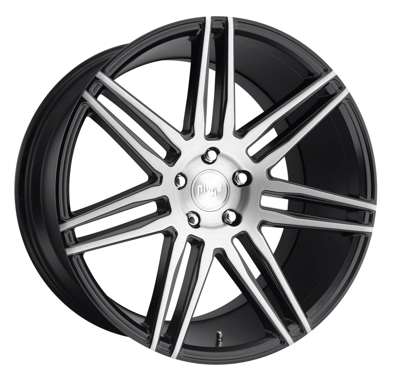 Niche Trento Gloss Black Brushed Wheel; 20x9. The Niche Trento Gloss Black Brushed Wheel offers a striking balance of style and refinement. Its unique design accentuates the vehicle's aesthetic, while the premium construction underscores its robust nature. This wheel is a perfect choice for those seeking both elegance and a strong visual statement.