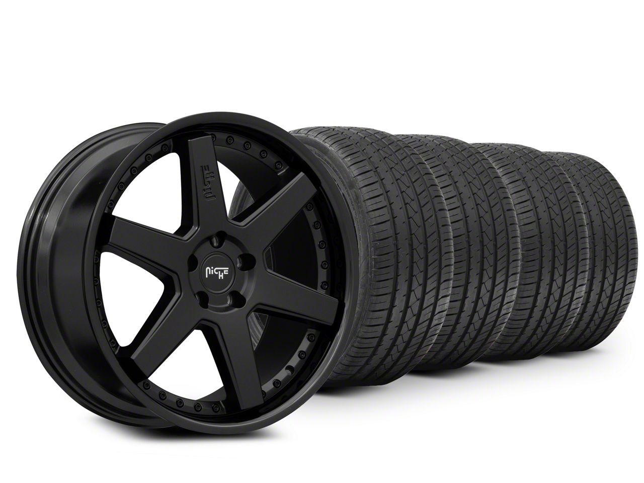 Mounted and Balanced Wheel and Tire Kit. This wheel and tire combo kit features (4) 20x9 Niche Altair Gloss Black with Matte Black Lip Wheels and (4) Lionhart All-Season LH-Five 255/35R20 tires that have been put together into an easy to buy kit that arrives to your door already mounted and balanced ready to be installed on your vehicle.