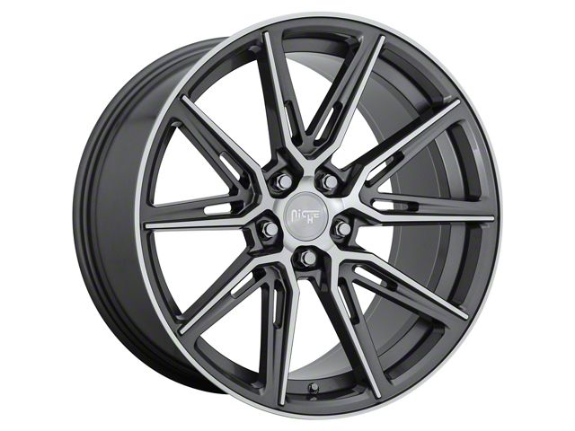 Niche Gemello Gloss Anthracite Machined Wheel; Rear Only; 20x10.5 offers a sleek and modern design that enhances the visual appeal of any vehicle. Crafted with attention to detail, this wheel merges aesthetic elegance with a robust build, making it a fitting choice for those seeking a blend of style and durability.
