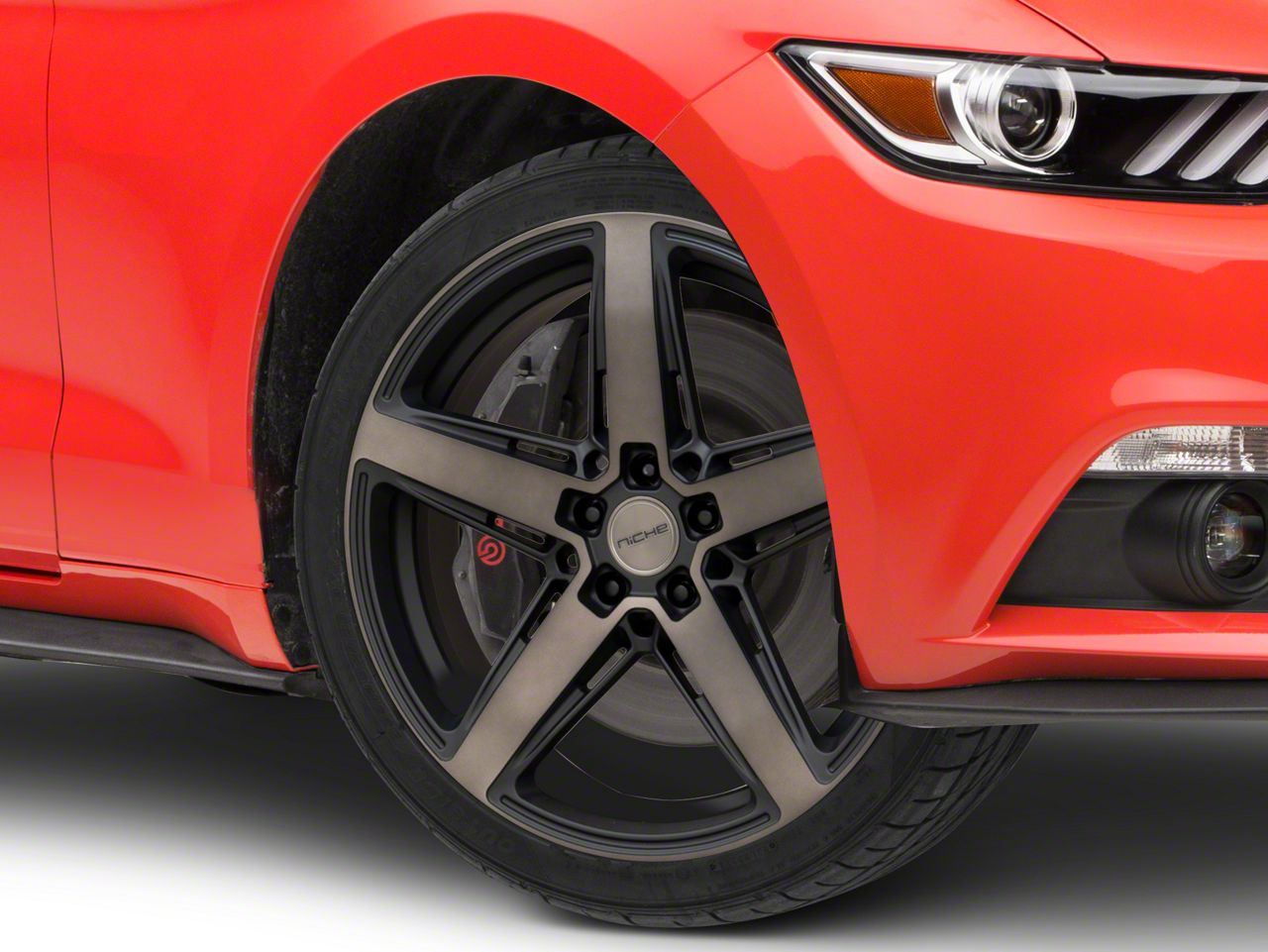 Application. This Niche Teramo Matte Black with Double Dark Tint Face Wheel; 20x9.5, with a backspace of 6.628 Inch, 168.4mm and a bolt pattern of 5 x 114.3mm (5 x 4.5-Inch), is designed to enhance alignment and driving stability. It's specially designed to fit the 2015-2023 Mustang EcoBoost, V6 models, sold individually.