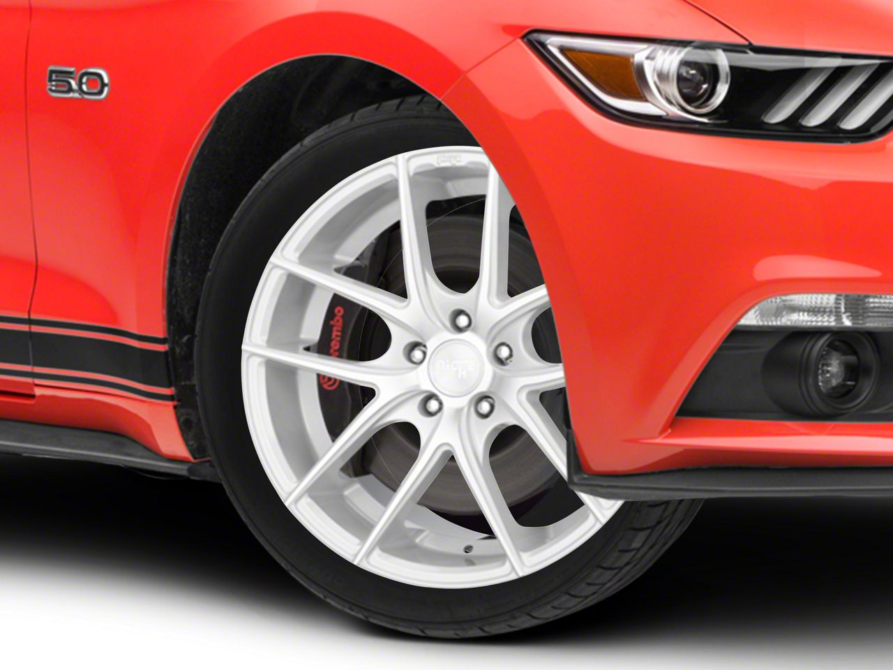 Application. This Niche Targa Matte Silver Wheel; 19x8.5, with a backspace of 6.128 Inch, 155.7mm and a bolt pattern of 5 x 114.3mm (5 x 4.5-Inch), is designed to enhance alignment and driving stability. It's specially designed to fit the 2015-2023 Mustang Pack, V6 models, sold individually.