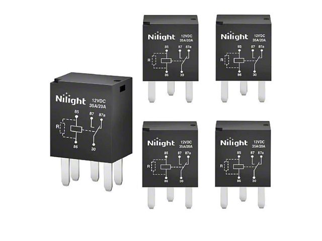 Reliable Electrical Switching Solution. The 5-Pin SPST Electrical Relays are designed for dependable switching in a variety of 12V electrical systems. This 5-pack set is ideal for managing lighting, fan, fuel pump, or horn circuits in custom or replacement applications. Built for long-term reliability, each relay ensures consistent electrical performance in high-temperature and high-load conditions.
