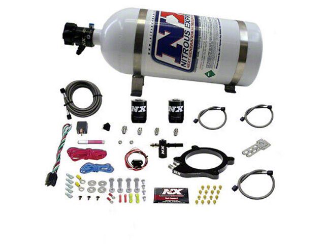 Description. The Nitrous Express LT4 6.2L Nitrous Plate System features Spraybarless technology for the ultimate in atomization and distribution. The billet plate bolts between the throttle body and intake making installation quick and easy. The solenoids are made of billet aluminum and carbon fiber for the ultimate in performance and weight savings! A direct-plug-in Fuel Line Adapter is provided to simplify installation (no need to cut your factory fuel lines). This system includes a TPS Autolearn switch so the nitrous only activates at wide open throttle and automatically turns off when you let your foot off the accelerator. The system includes jetting for 50, 75, 100, 150, 200, and 250 horsepower. Systems include a stainless braided N2O line, master arming switch, relay, relay harness and all necessary hardware to complete the installation. Systems ordered with a nitrous bottle include the new billet aluminum Lightning bottle valve and stainless bottle brackets.