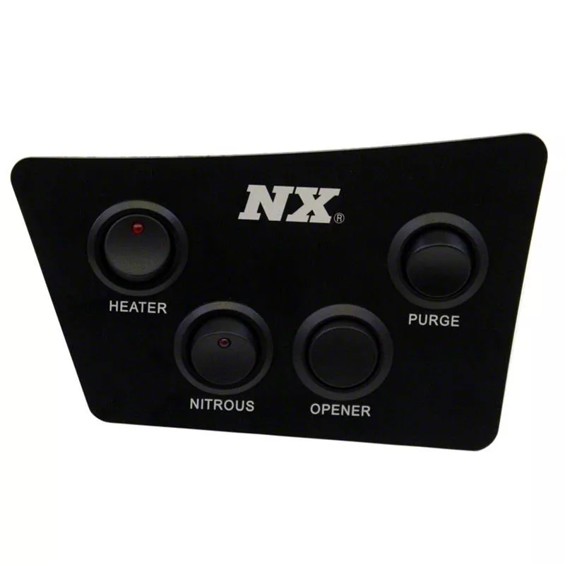 Clean Nitrous Management at Your Fingertips. The Nitrous Express Custom Switch Panel simplifies your nitrous system management with labeled toggle switches for arm, purge, heater, and bottle opener. Designed for convenient use and a clean interior appearance, this panel keeps your setup stealthy yet fully functional — all in one compact, OEM-like location.