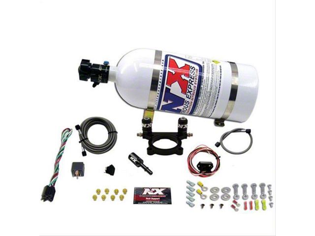 Construction and Appearance. The kit includes a glossy white finish 10-pound bottle for an aggressive visual impact. With durable stainless braided lines and precision-built components, this nitrous system combines aesthetics and durability. All elements are crafted with performance and longevity in mind, providing dependable operation under high stress.