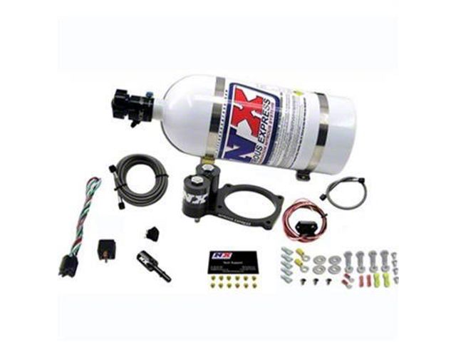 Description. The Nitrous Express Dodge Hellcat nitrous plate system features Spraybarless technology for the ultimate in atomization and distribution. The billet plate bolts between the throttle body and intake making installation quick and easy. The solenoids are integrated into the plate for a super clean look and easy install. A direct-plug-in Fuel Line Adapter is provided to simplify installation (no need to cut your factory fuel lines). This system includes a TPS Autolearn switch so the nitrous only activates at wide open throttle and automatically turns off when you let your foot off the accelerator.