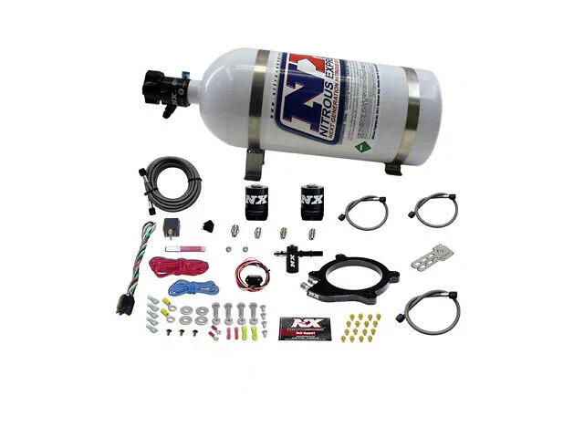 Description. The Nitrous Express LT4 6.2L Nitrous Plate System features Spraybarless technology for the ultimate in atomization and distribution. The billet plate bolts between the throttle body and intake making installation quick and easy. The solenoids are made of billet aluminum and carbon fiber for the ultimate in performance and weight savings! A direct-plug-in Fuel Line Adapter is provided to simplify installation (no need to cut your factory fuel lines). This system includes a TPS Autolearn switch so the nitrous only activates at wide open throttle and automatically turns off when you let your foot off the accelerator. The system includes jetting for 50, 75, 100, 150, 200, and 250 horsepower. Systems include a stainless braided N2O line, master arming switch, relay, relay harness and all necessary hardware to complete the installation. Systems ordered with a nitrous bottle include the new billet aluminum Lightning bottle valve and stainless bottle brackets.