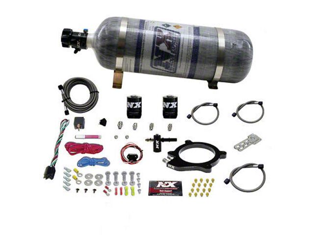 Description. The Nitrous Express LT4 6.2L Nitrous Plate System features Spraybarless technology for the ultimate in atomization and distribution. The billet plate bolts between the throttle body and intake making installation quick and easy. The solenoids are made of billet aluminum and carbon fiber for the ultimate in performance and weight savings! A direct-plug-in Fuel Line Adapter is provided to simplify installation (no need to cut your factory fuel lines). This system includes a TPS Autolearn switch so the nitrous only activates at wide open throttle and automatically turns off when you let your foot off the accelerator. The system includes jetting for 50, 75, 100, 150, 200, and 250 horsepower. Systems include a stainless braided N2O line, master arming switch, relay, relay harness and all necessary hardware to complete the installation. Systems ordered with a nitrous bottle include the new billet aluminum Lightning bottle valve and stainless bottle brackets.
