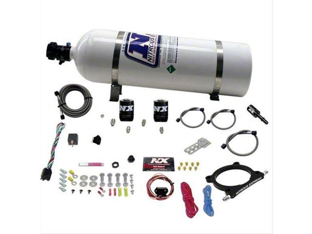 Description. Nitrous Express has combined performance, quality and easy installation in this new nitrous system engineered specifically for the 2011 Ford 5.0 Coyote engine. This system includes an Autolearn TPS switch which allows the nitrous to activate only at wide open throttle. A direct-plug-in Fuel Line Adapter is provided to simplify installation (no need to cut your factory fuel lines). The system includes the billet aluminum and carbon fiber Lightning series solenoids, billet aluminum nitrous plate, nitrous bottle with the new billet aluminum Lightning 45 bottle valve, extra long stainless braided N2O line, stainless bottle brackets, master arming switch, relay, relay harness and all necessary hardware to complete the installation. Includes jetting for 50, 75, 100, 125, 150, 200 and 250HP. Fits 2011 Ford GT Mustangs with the 5.0L 4 valve coyote engine