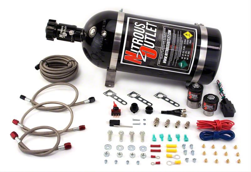 Significant Power Boost. Unleash the full potential of your Chrysler with the Nitrous Outlet Single Nozzle System, featuring a robust 10 lb. aluminum nitrous bottle. Designed specifically for 4.7/5.7/6.1 Chrysler engines, this single-nozzle kit is engineered to enhance performance by flowing up to 250 HP of nitrous, providing a significant boost to your vehicle's power. With a comprehensive package including a HEMI Dodge Charger fuel line adapter and E85 compatibility through various jetting, it's tailored for high-performance enthusiasts.