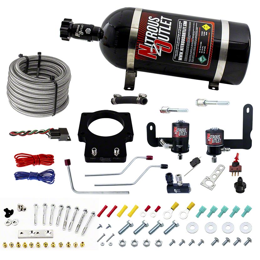 Complete System. This system includes all of the necessary components; billet aluminum nitrous plate, 50-200 HP jetting, hardware, and wiring to properly install a wet nitrous system on your vehicle.