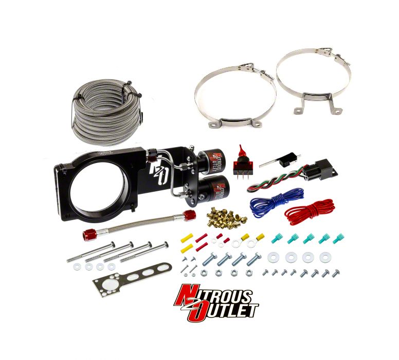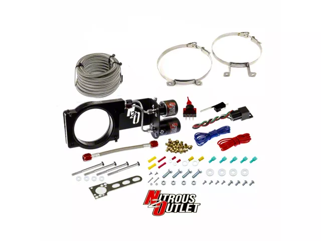 This system includes all of the necessary components; billet aluminum nitrous plate, 50-200 HP jetting, hardware, and wiring to properly install a wet nitrous system on your vehicle.