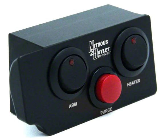 Construction and Features. Featuring a matte black finish, this switch panel is crafted from high-quality billet aluminum, ensuring durability and a stylish appearance. The panel is designed to control the system arm, purge, and bottle heater, offering comprehensive control over your nitrous system. Laser-etched button labels and the Nitrous Outlet logo add a professional touch and ensure long-lasting readability. The switch panel is installed onto the stock ashtray, providing a clean and integrated look.