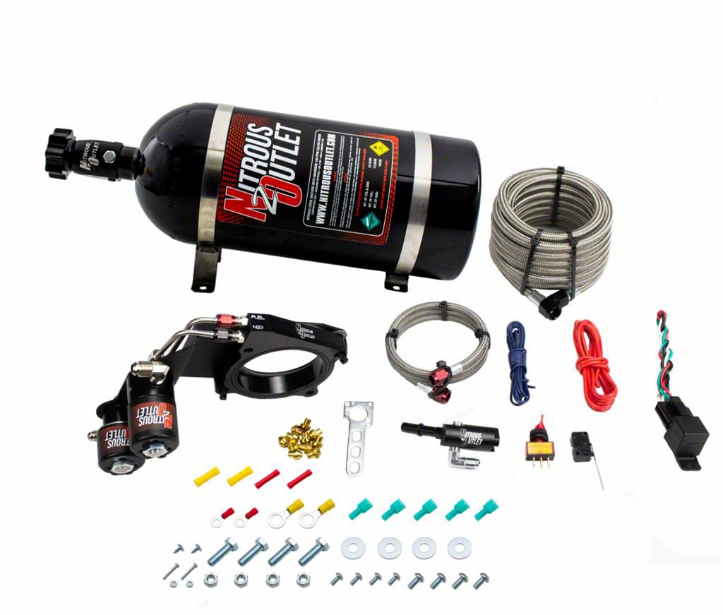 Superior Performance. The Nitrous Outlet Hardline Plate System is designed to provide an additional 400 horsepower to your vehicle. Custom-made for your specific vehicle, the system uses .75-inch-thick T6061 billet aluminum for added durability. It features 6 fuel and nitrous discharge ports and uses a 15-pound bottle for maximum power.