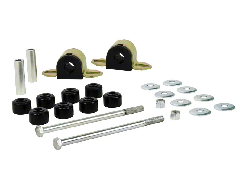 Product Overview. The Rear Sway Bar Mount and End Link Bushing Set; 19mm provides essential suspension maintenance by replacing worn bushings that support the sway bar and end link. This kit improves handling stability and reduces noise by securing the sway bar firmly, helping to maintain optimal vehicle control during cornering. Effective lubrication retention ensures long-term performance and durability in demanding driving conditions.