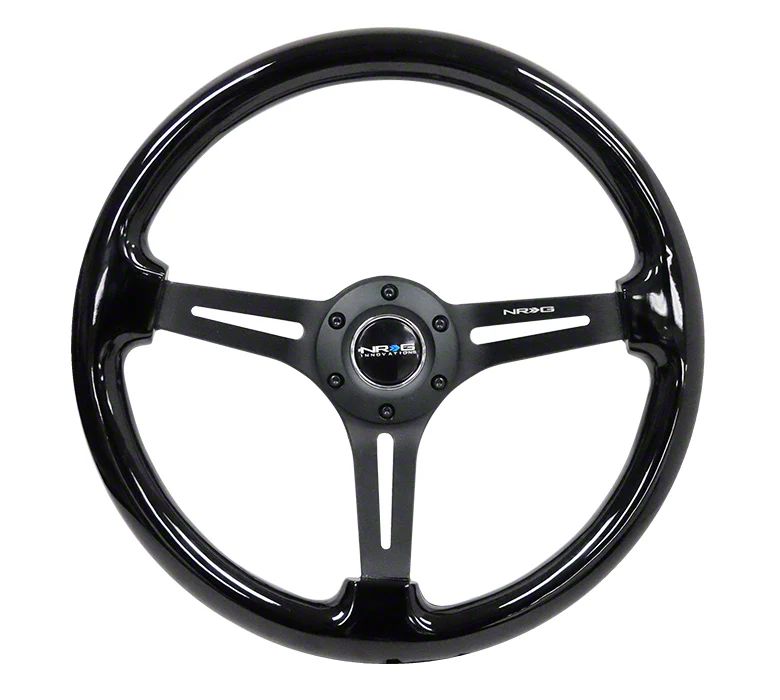 NRG Innovations 350mm 3-Inch Deep Dish Wood Steering Wheel with Slit Spokes; Black