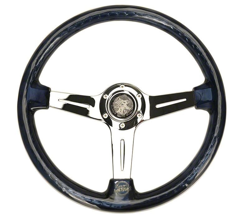 Distinctive Steering Wheel. The Matsuri 350mm 2-Inch Deep Dish Steering Wheel; Chrome and Smoked offers a unique blend of style and functionality for automotive enthusiasts. Designed to enhance grip and control, this steering wheel is ideal for those seeking a personalized driving experience and a bold upgrade to their vehicle's interior.