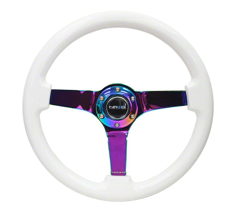 NRG Innovations Wood Grain 350mm 3-Inch Deep Dish Steering Wheel; White and Neochrome