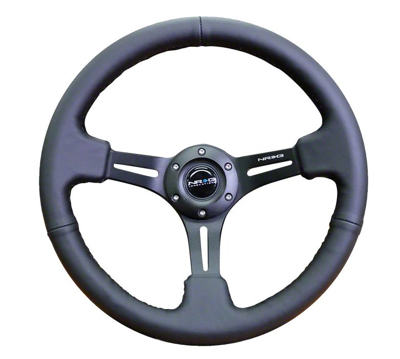 NRG Innovations 350mm 3-Inch Deep Dish Steering Wheel; Black Leather with Black Stitching