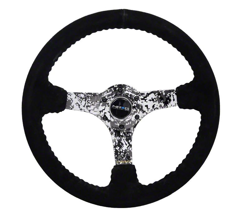 NRG Innovations 350mm 3-Inch Deep Dish Steering Wheel; Black Suede with Black Stitching and Hydro-Dripped Digital Camo Spokes