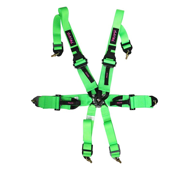 Construction and Appearance. Built for both resilience and style, this harness is crafted with high-grade 3-inch nylon belts that resist wear, stretching, and tearing under extreme stress. The Neon Green with Prisma Logo finish adds a bold and unique aesthetic to your racing interior while maintaining a professional look. Precision-stitched webbing and rugged mounting hardware ensure durability during intense use. It's engineered to provide confidence through every curve and straightaway.