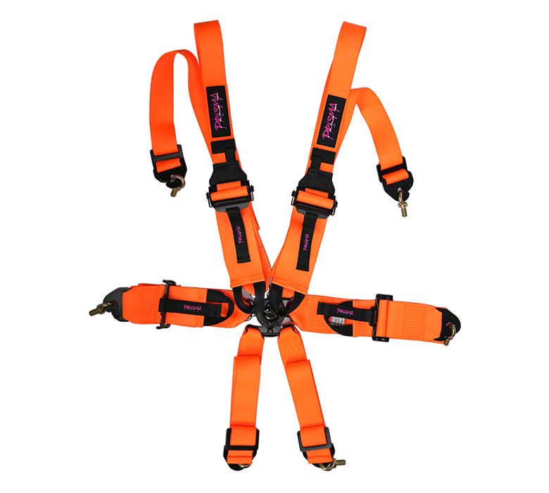 Construction and Appearance. Built for both resilience and style, this harness is crafted with high-grade 3-inch nylon belts that resist wear, stretching, and tearing under extreme stress. The Neon Orange with Prisma Logo finish adds a bold and unique aesthetic to your racing interior while maintaining a professional look. Precision-stitched webbing and rugged mounting hardware ensure durability during intense use. It's engineered to provide confidence through every curve and straightaway.