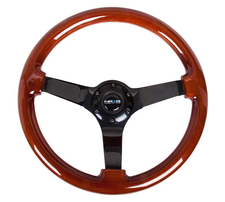Classic Performance Steering. The NRG Innovations Wood Grain 350mm 3-Inch Deep Dish Steering Wheel (Brown and Matte Black) blends vintage style with modern function. Designed for driving enthusiasts, this steering wheel enhances steering response and grip with a deeper dish design, perfect for track and street applications.