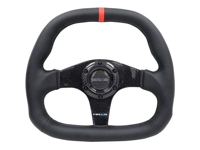 Application. This NRG Innovations 320mm Flat Bottom Carbon Fiber Steering Wheel; Black Leather With Red Center Mark fits universal applications. Some adaptation may be required.