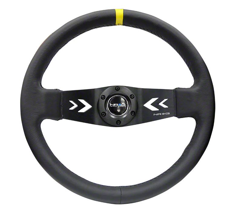 NRG Innovations 350mm Two Spoke Steering Wheel; Black Leather with Yellow Center Mark