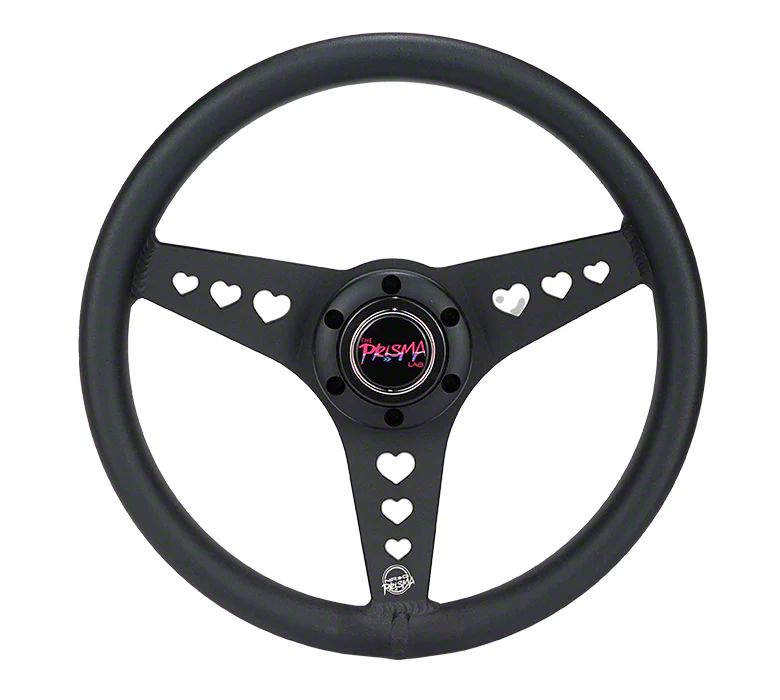 Built for Performance, Styled for the Bold. Finished in sleek anodized black, this steering wheel resists wear from daily use and adds an aggressive look to your vehicle's interior. The heart-shaped spoke cutouts add a touch of flair for drivers who want to express their individuality behind the wheel.