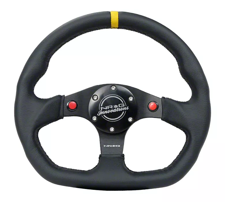 Application. The NRG Innovations 320mm Flat Bottom Dual Button Steering Wheel offers universal fitment.