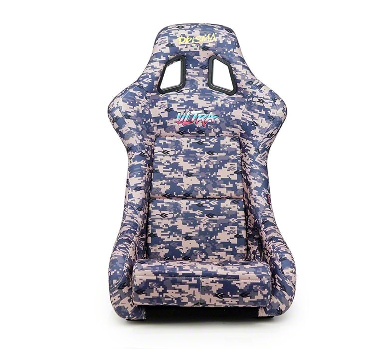 Application. This NRG Innovations Prisma Bucket Seat (Medium - Digital Camo and Silver) offers universal fitment.