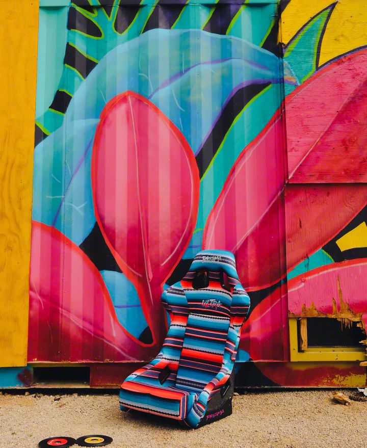 Construction and Appearance. Built with durable vegan micro-fiber materials, the seat showcases a unique Bajacali vegan design that adds a vibrant flair to any interior. It's insulated with carefully selected mixed-density foam, ensuring comfort over long periods. The seat also includes two convenient storage pockets on the front cushions, blending practicality with modern style.